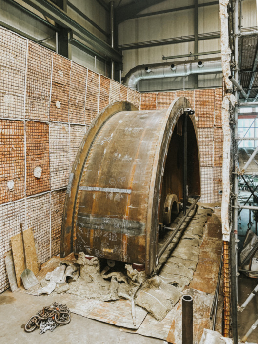 Eine Trommel besteht dabei aus 4 Hälften, wobei eine Hälfte auf ein Stückgewicht von knapp 60 Tonnen kommt.