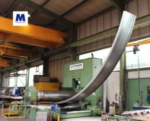 Übliche Produkte für Rundbiegemaschine sind Rohre und je nach Bauart der Maschine auch Konen. Oftmals wird der Anbiegeprozess dabei von Abkantpressen übernommen und auf der Rundbiegemaschine nur noch das Zuwalzen ausgeführt.
